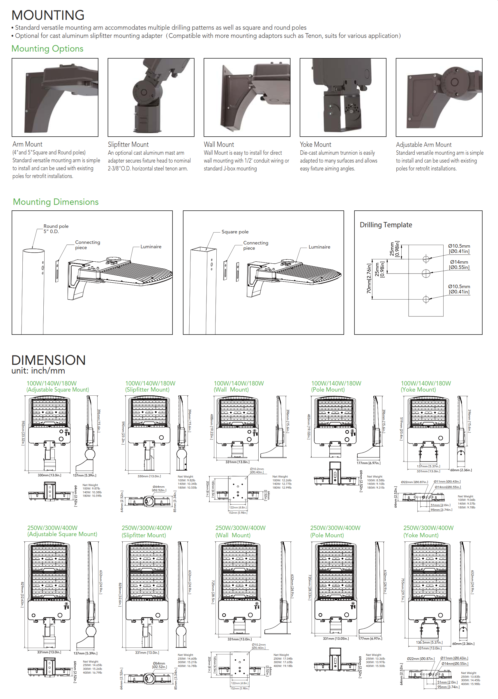 • 100-400Watt-Wattage and CCT Selectable LED Area Light