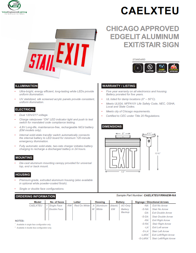 Overview Product Description Product Videos Custom Field Product Reviews Write a Review Write a Review × Chicago Approved Edgelit Aluminum Exit/Stair Sign Rating * Select Rating 1 star (worst) 2 stars 3 stars (average) 4 stars 5 stars (best) Name Review Subject * Comments *