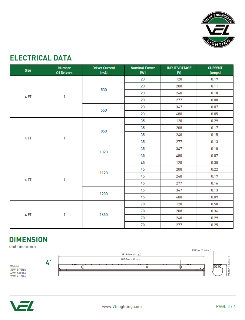 ▪ Provides 4,000 nominal lumens.