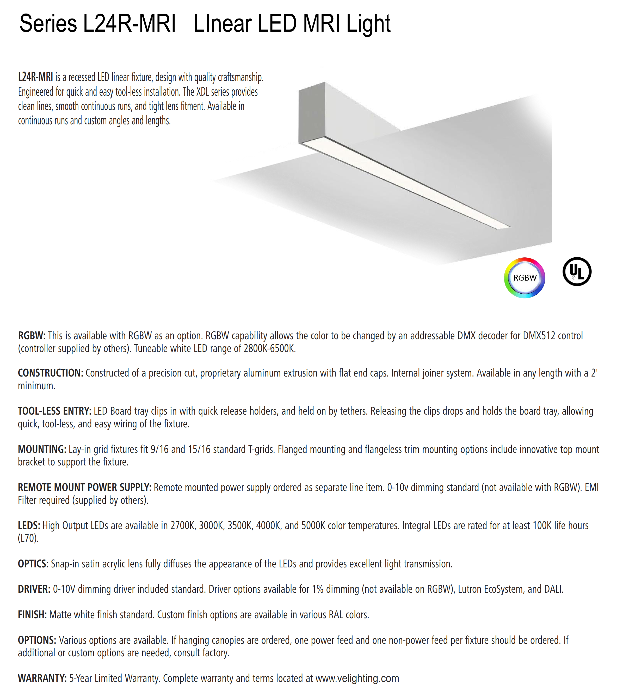• The L24R-MRI is a recessed LED linear fixture, design with quality craftsmanship. Engineered for quick and easy