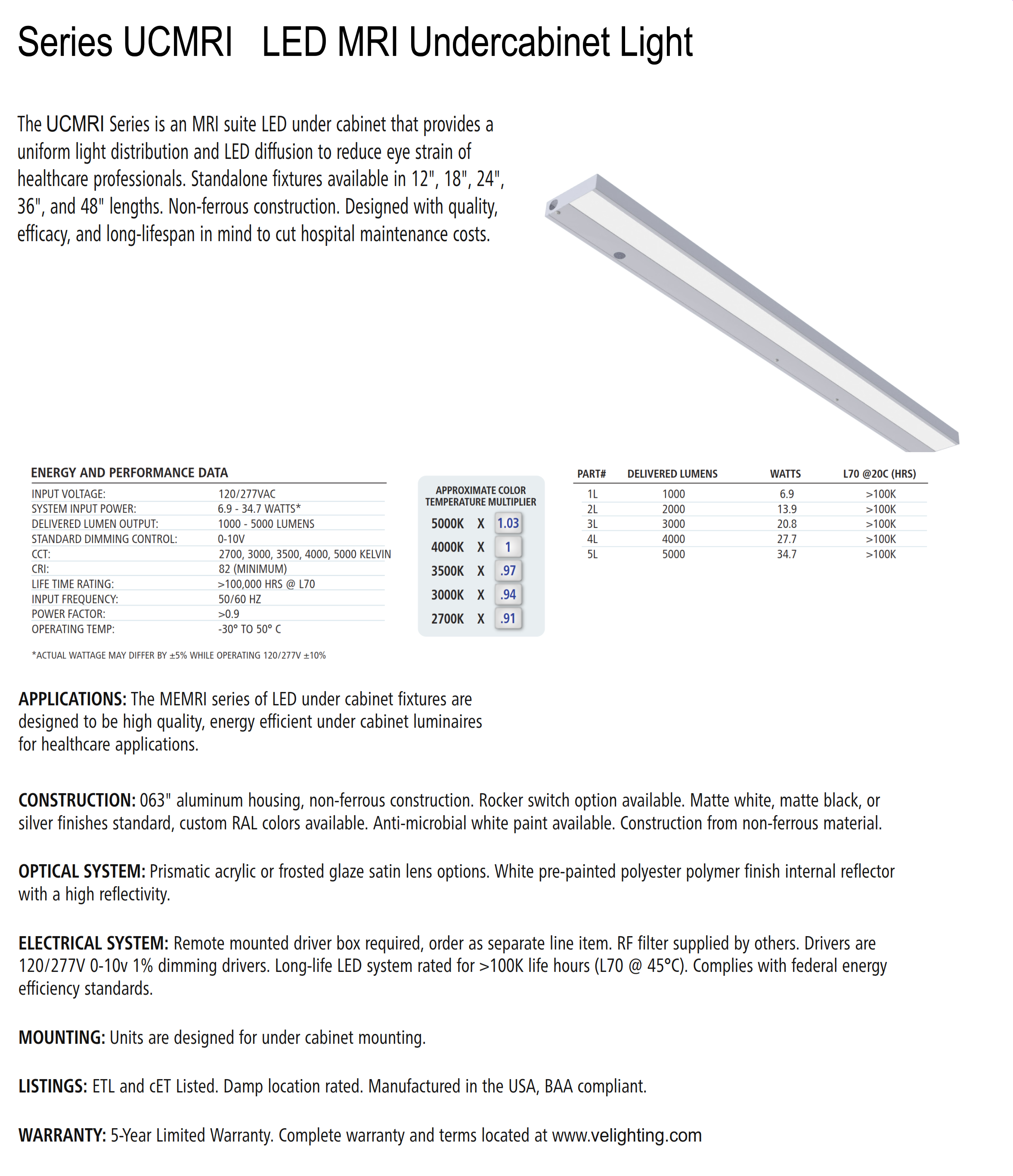 • The UCMRI Series is an MRI suite LED under cabinet that provides a uniform light distribution and LED diffusion