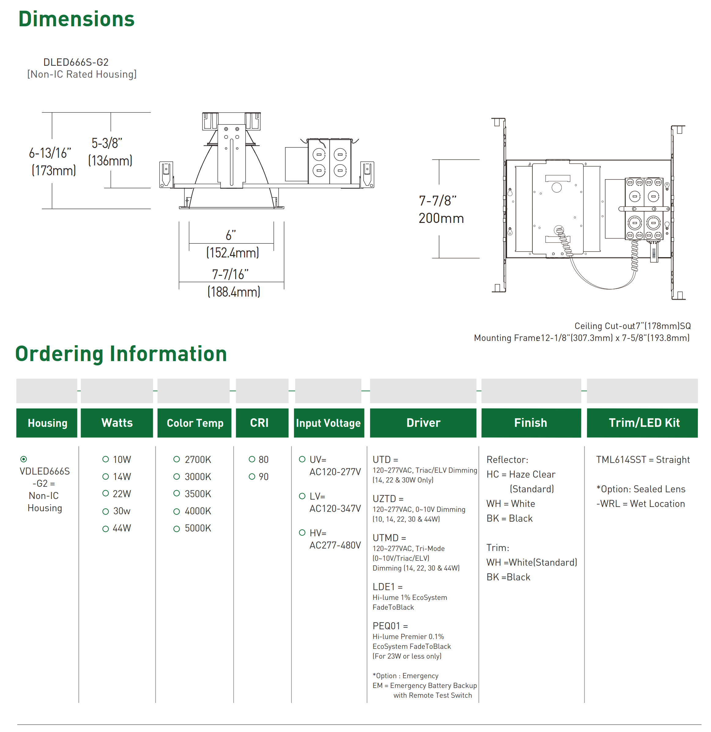 • cETLus Listed. VDLED666S-G2 Square Architectural Recessed Downlight