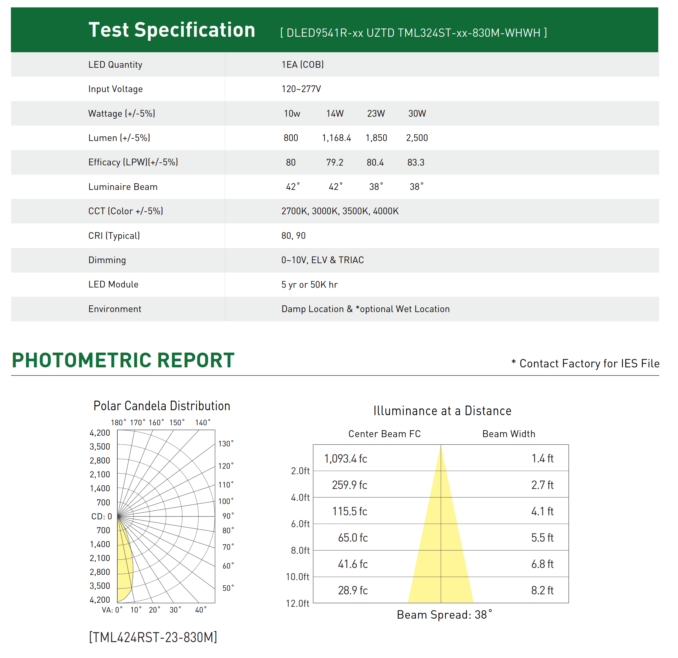 • Produces 600 lumens output from luminaire with a CCT of 3000K.